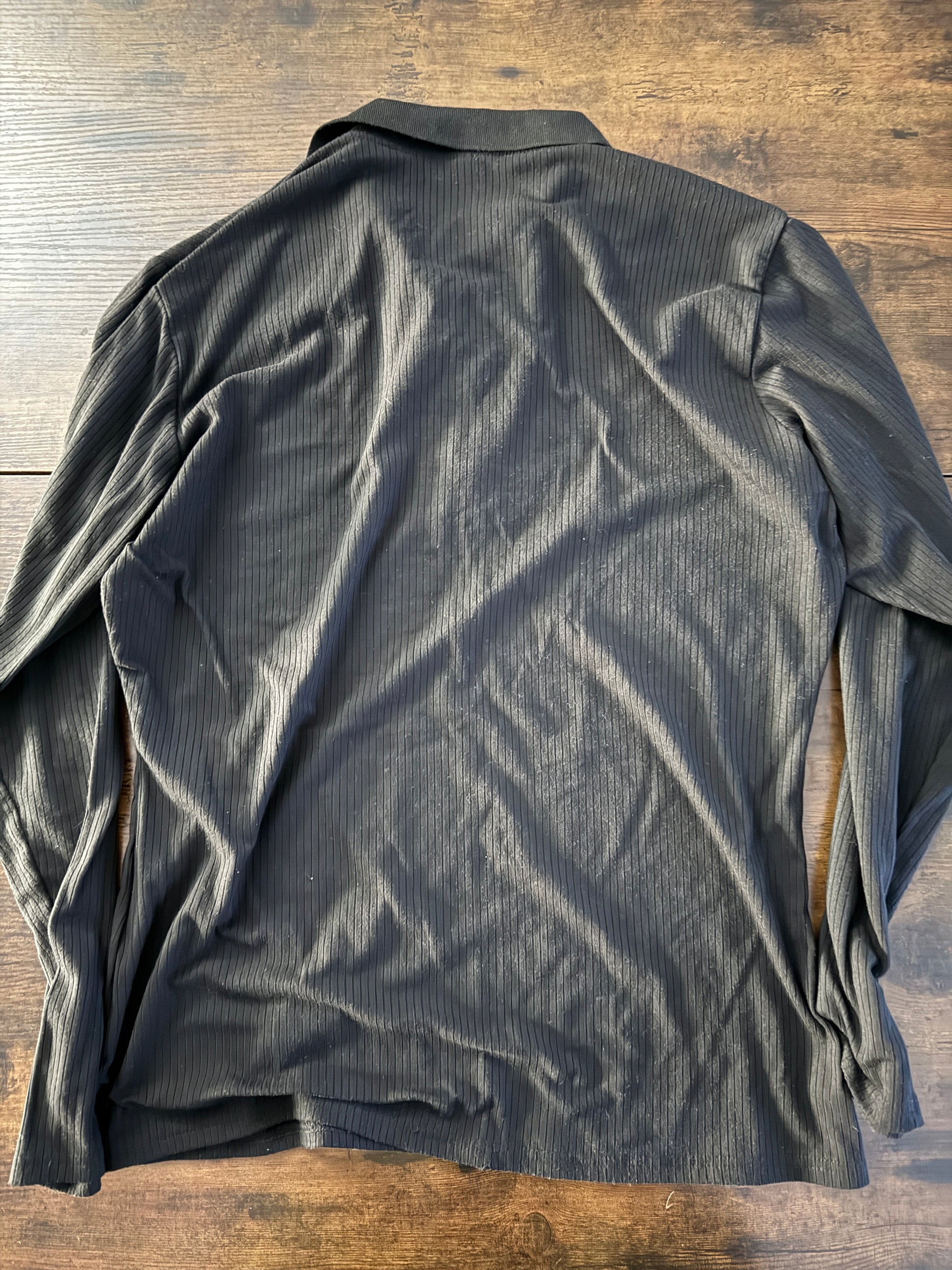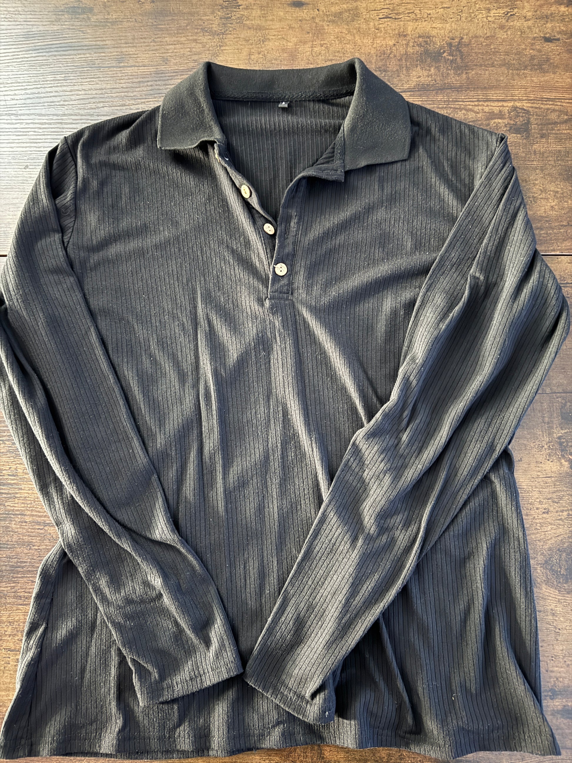 URRU Men's Muscle T Shirts Stretch Long Sleeve Classic Ribbed Casual Slim Fit L Black